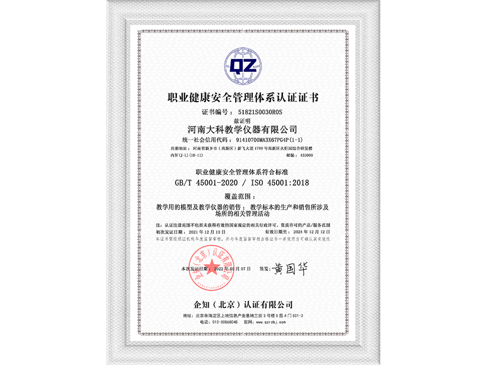 職業(yè)健康安全管理體系認證證書